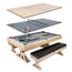 The Rockford pool table dining table features a timeless farmhouse design that's certain to add a touch of rustic charm to your space. This multi-functional table is crafted from sturdy engineered wood featuring a rock-solid trestle support base system. The well-built cabinet is available in two beautiful melamine finish colors, rustic oak, or espresso, that highlight the rich grain and natural beauty of reclaimed wood. The table can easily be converted from a dining or craft table to a competitive table tennis or pool table in seconds.